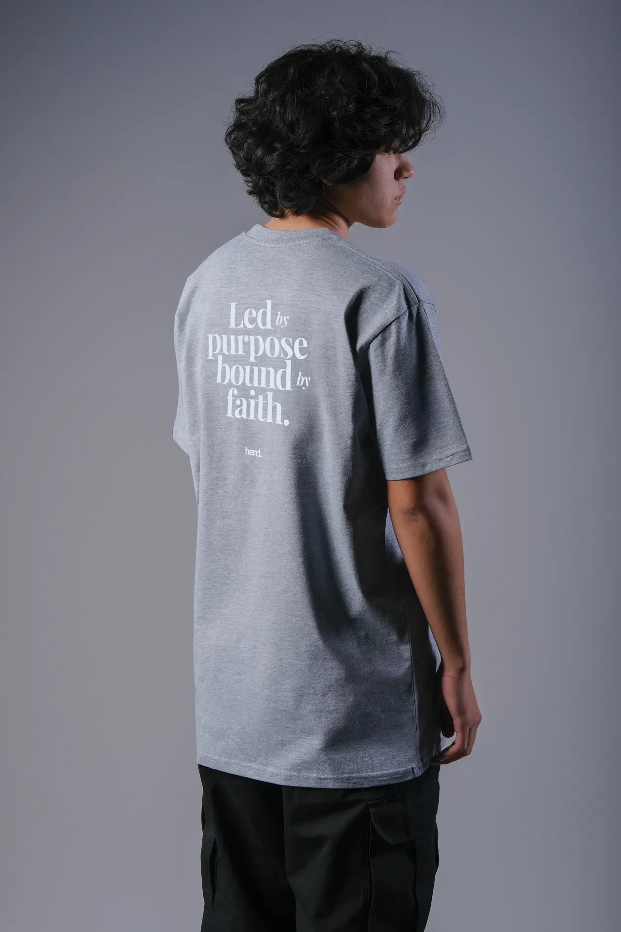 Featuring a small front print and a bold oversized back print with the words “Led by purpose, bound by faith.”, this tee carries HERD’s statement with impact. Made from 100% combed cotton in a relaxed unisex fit, 200 GSM, and pre-shrunk to hold its shape. This tee offers everyday comfort with a message that lasts.